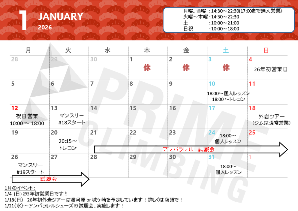 今年もあっという間でしたね、、、さて、1月の営業カレンダー公開します!